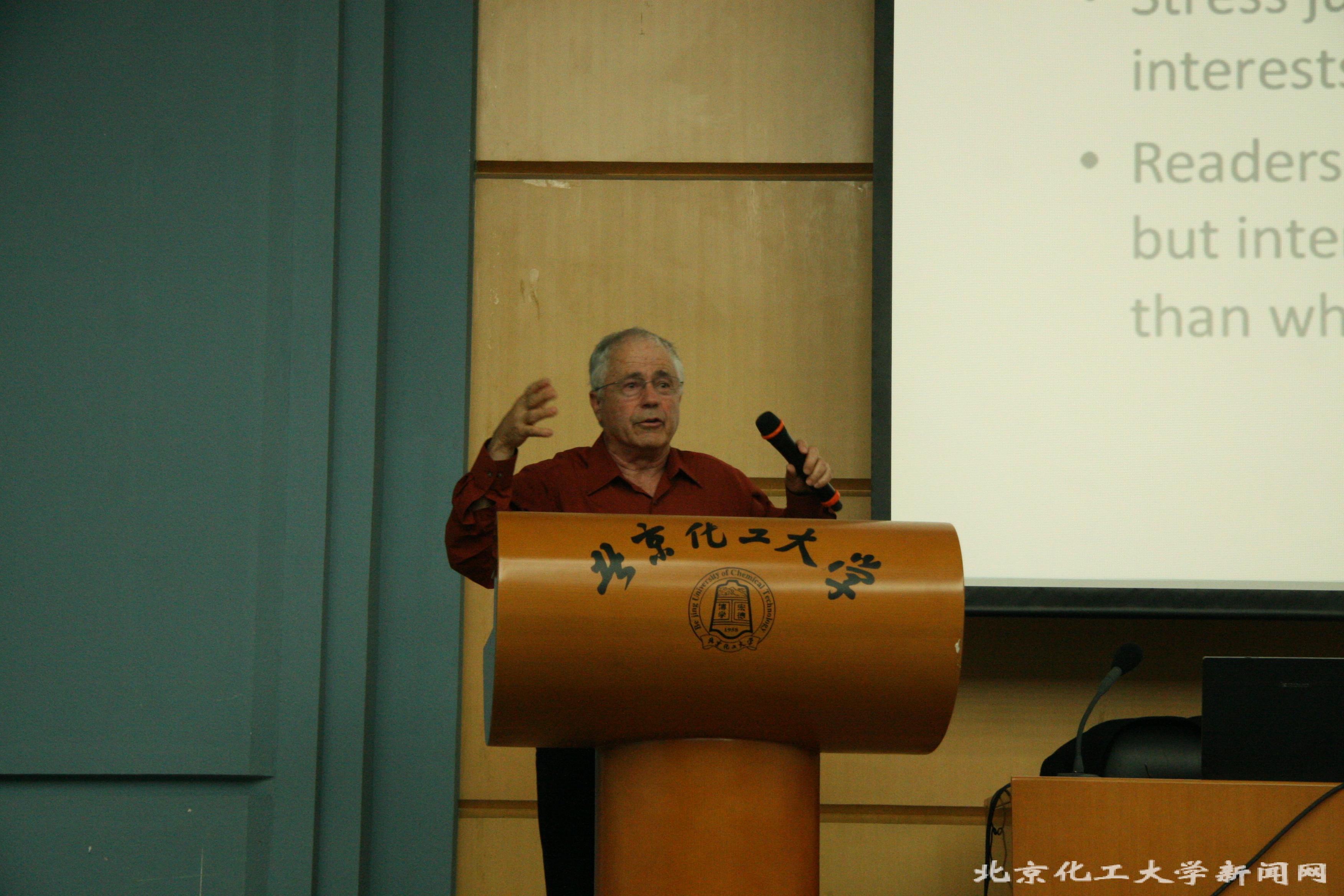 讲座由国际教育学院副院长冯江鸿主持。文法学院党总支副书记付国柱、副院长李素贞(挂职)出席。外语系部分教师和三百多名学生一起参加了讲座。