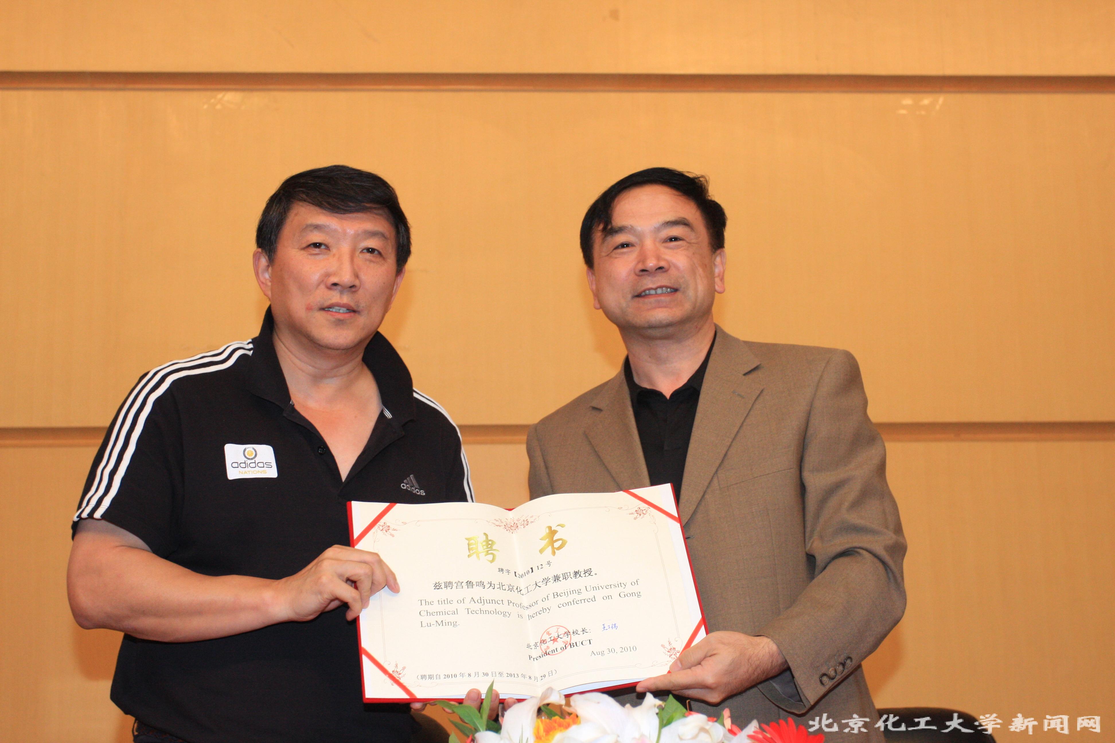 会上,甫玉龙院长介绍了两位教授的履历及成绩。校党委副书记兼副校长任新钢代表学校向两位教授颁发了聘书。他在讲话中对两位教授的到来表示热烈的欢迎,并对两位教授能够为我校学科建设的发展、体育工作的推动做出贡献致以诚挚的感谢。两位教授也在讲话中表示能成为我校兼职教授感到非常荣幸,同时也感到责任重大,希望在以后的交流合作中,能为学校的进一步发展做出应有的贡献。