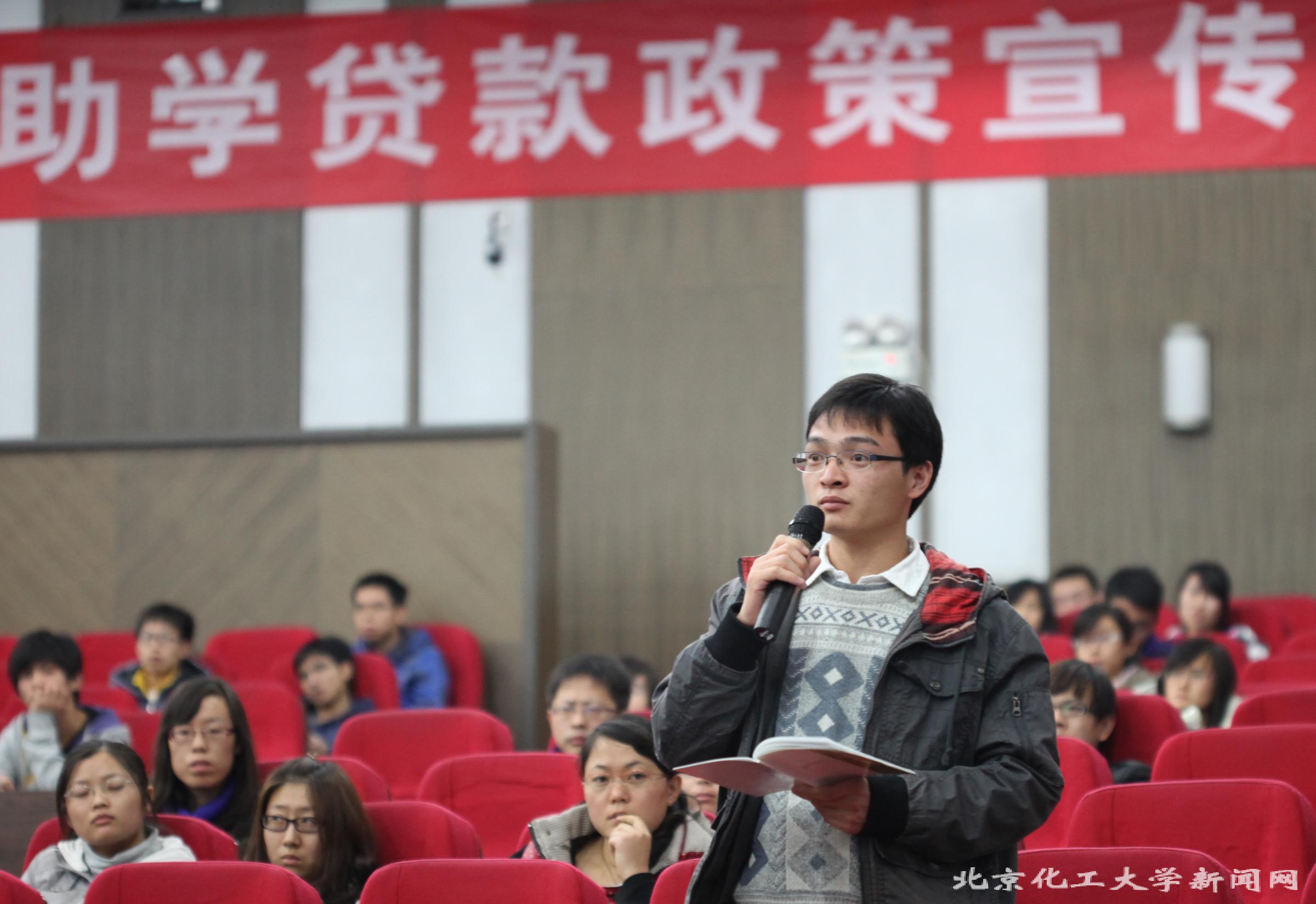 使家庭经济困难同学进一步了解国家助学贷款相关事宜,10月26日和27日,我校学生资助办公室分别在北区多功能厅、东区科学会堂,对即将办理国家助学贷款的本、专、研同学开展了“2011年国家助学贷款政策宣传讲座”活动。中国银行朝阳分行个人信贷部主任范延宁、樱花东街支行行长车延涛、个人信贷部经理金勇应邀来我校与校资助办公室黄晓一一同为同学们对贷款的相关流程和政策进行了全面介绍。