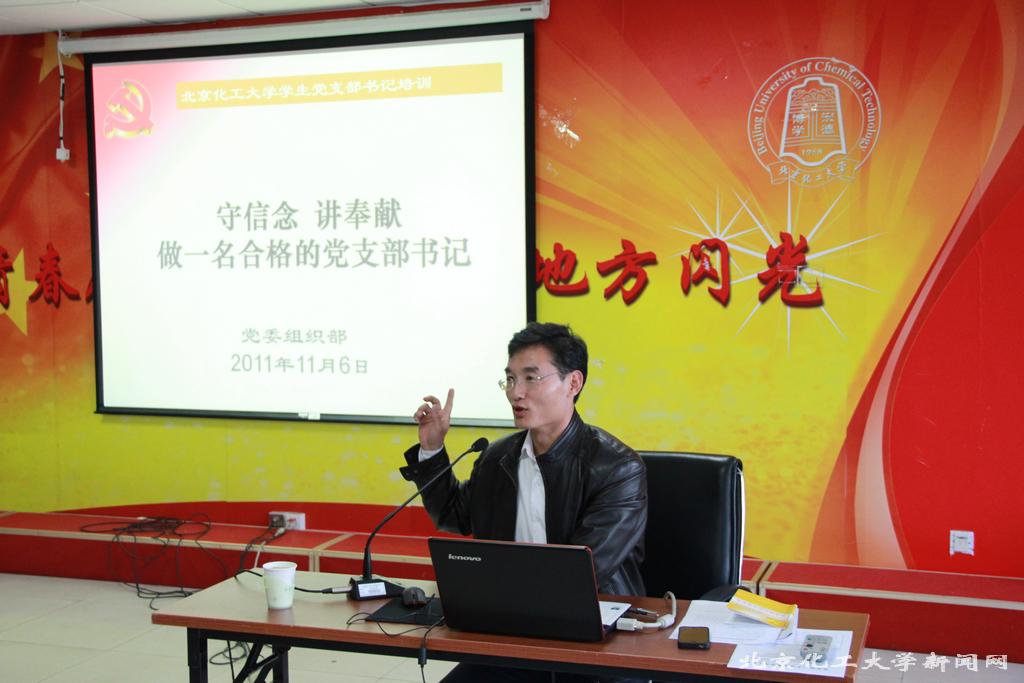 11月6日,我校举办2011年学生党支部书记培训班。学工部部长罗伟、组织部副部长庞然出席了此次活动。来自全校的180名本科及研究生院党支部书记参加了培训。培训由学工部副部长崔春花主持。本期党支部书记培训班通过励志讲座、党务工作实务培训、经验交流、分组讨论、参观展览等五个部分,对全校学生党支部书记进行了一次全面、系统的培训。