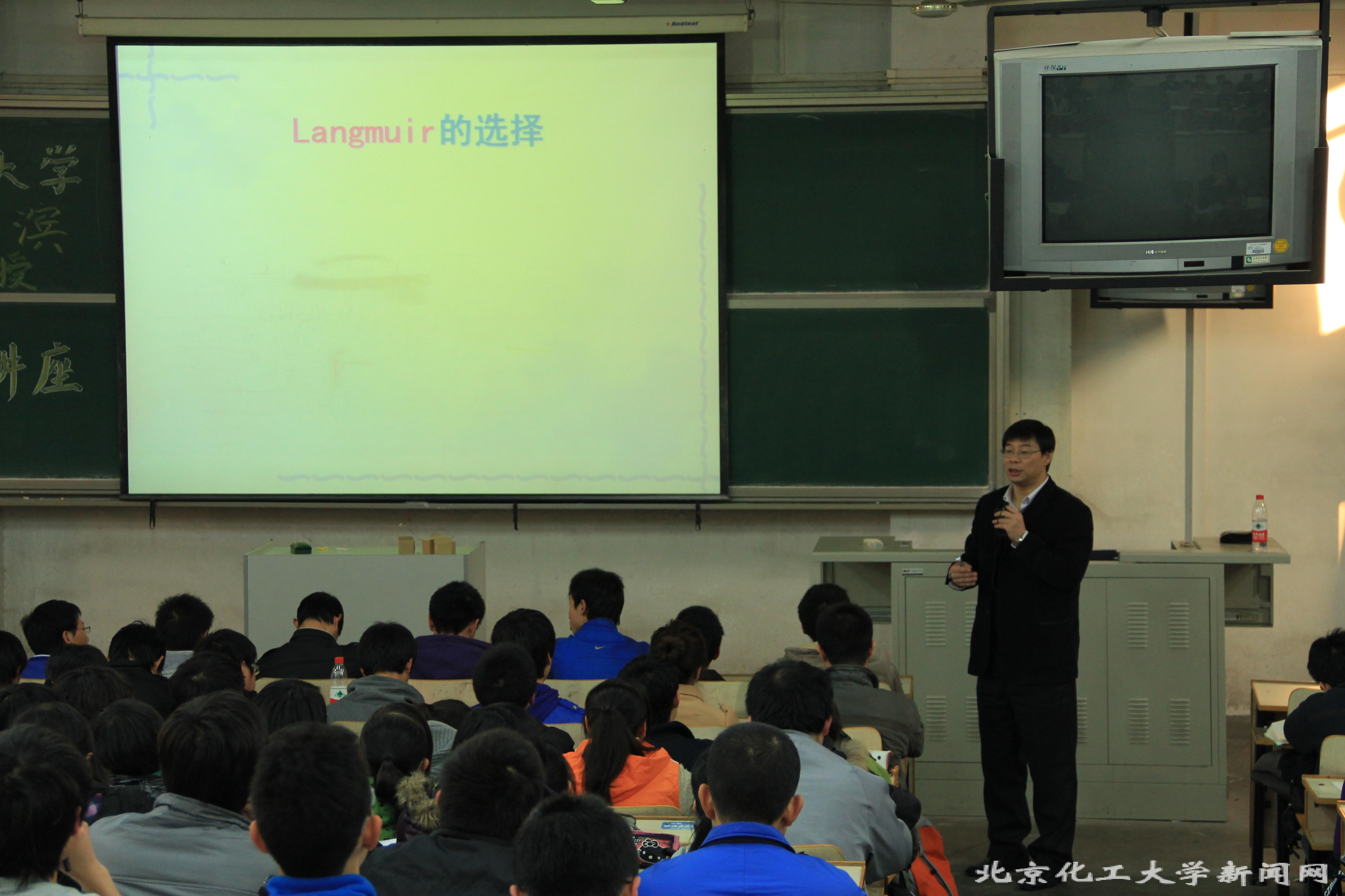 黄教授从年轻时代的Langmuir在GE公司工作取得的突出业绩讲起,引出了他在胶体化学领域取得重大科研成果,并介绍了胶体化学的发展历程。随后,黄教授和大家一起分享了席格蒙迪、虎克、牛顿、达芬奇等多位科学家在研究界面化学过程中的趣事,使大家在轻松的氛围中对界面化学方面的知识有了更加深入的了解。整场讲座,黄教授旁征博引、深入浅出,和广大同学进行了多次精彩的互动,深受大家的欢迎。