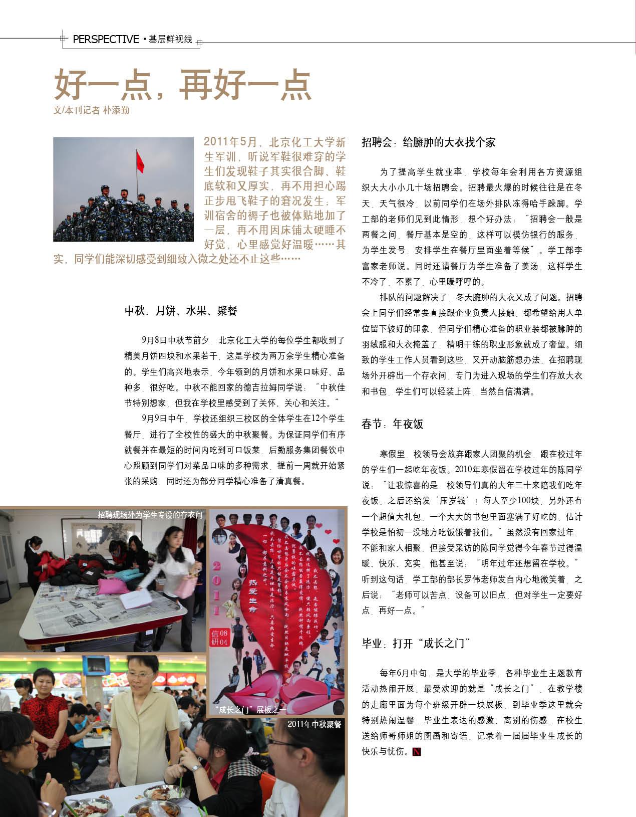 ( 2011年第九期《大学生》杂志以《好一点,再好一点》为题报道我校坚持思想政治教育工作“三贴近”,努力为学生健康成长服务,以下是关于我校部分的内容。)