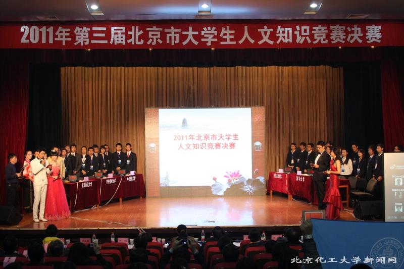 11月26日下午,第三届北京市大学生人文知识竞赛决赛在我校科学会堂举行。北京师范大学副校长韩震、北京化工大学党委副书记兼副校长任新钢、北京市教育委员会高教处副处长金红莲等领导出席活动。