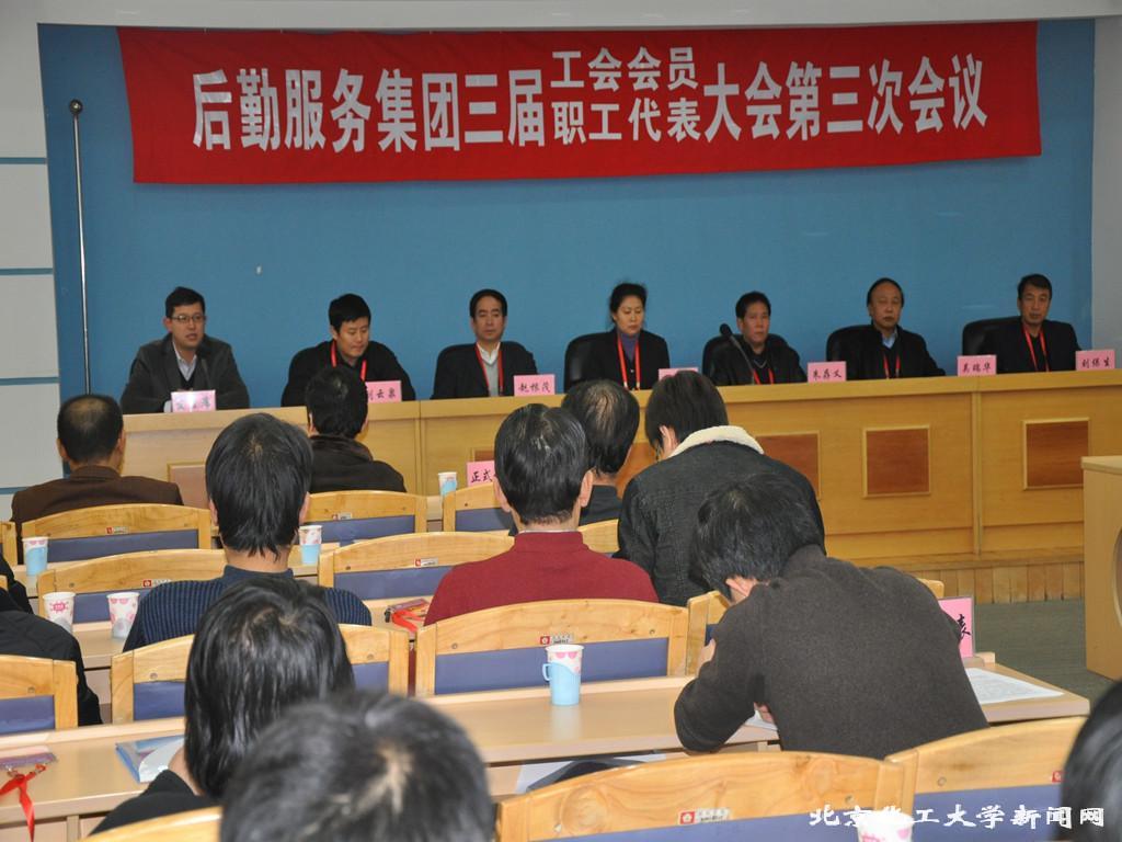 12月7日下午,后勤服务集团第三届第三次工会会员暨职工代表大会在逸夫图书馆会议中心举行。校党委副书记、校工会主席王同奇,校工会常务副主席苏建茹出席会议。经管学院工会主席冯婕,文法学院、马克思主义学院工会主席刘玲,北京北化大投资公司工会主席马玉顺,校机关工会主席董振兴等作为兄弟单位嘉宾代表参加会议。后勤集团全体领导、职代会正式代表、列席代表等90余人参加了会议,讨论并审议通过了大会文件和总经理报告。