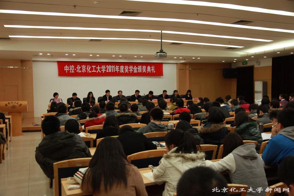 12月7日,中控·北京化工大学2011年度奖学金颁奖典礼在逸夫图书馆多功能厅举行。校党委副书记兼副校长任新钢,中控公司总裁助理兼人力资源总监周小文,信息学院院长朱群雄,中控公司行业业务总监申屠久洪,学工办副主任崔春花,中控公司市场中心副主任仲卫涛,信息学院副院长李宏光,信息学院党委副书记汪雪琴等领导和嘉宾出席典礼。典礼由汪雪琴老师主持。