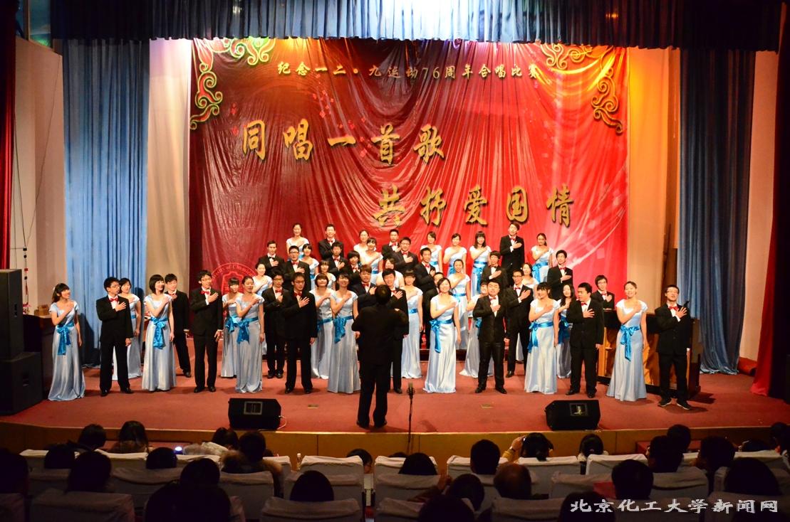 晚上6点,以“同唱一首歌,共抒爱国情”为主题的合唱比赛在北功厅举行。各学院分别选送一支代表队参赛,每支队伍演唱必选和自选两首曲目。同学们集思广益、别出心裁,从艺术水准、舞台效果、编排创意等几个方面做了精心的准备,为台下观众带来一场精彩的视觉盛宴。比赛期间,校合唱团在马梅老师带领下为同学们献上了两首精彩的表演曲目,将晚会现场推向高潮。最终,化工学院勇得桂冠,经济管理学院、理学院分列二、三名。陈冬生副校长、任新钢副校长和郭奋老师为获奖学院颁奖。
