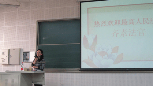 2011年12月31日上午,应教务处邀请,最高人民法院刑事审判庭齐素法官为文法学院法律系学生带来了一场题为《刑事审判技巧》的讲座。教务处和文法学院法律系相关老师出席讲座。