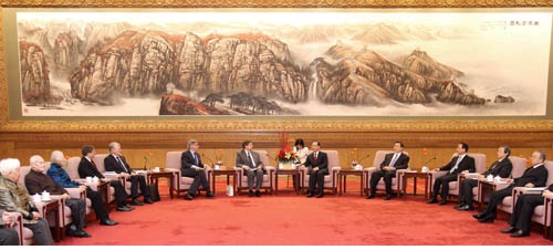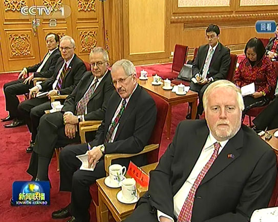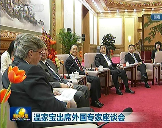 新春佳节临近,1月12日下午在人民大会堂东大厅,我校化工资源有效利用国家重点实验室外籍专家、英国皇家化学会北京分会主席 David G. Evans教授和20多位外国专家一起参加了外国老专家和在华工作的优秀外国专家代表座谈会,受到中共中央政治局常委、国务院总理温家宝同志的亲切接见。出席座谈会的还有中共中央政治局委员、国务院副总理张德江,中共中央书记处书记、中央办公厅主任令计划,国务委员兼国务院秘书长马凯,国务委员戴秉国等领导同志。(根据新华社报道整理)