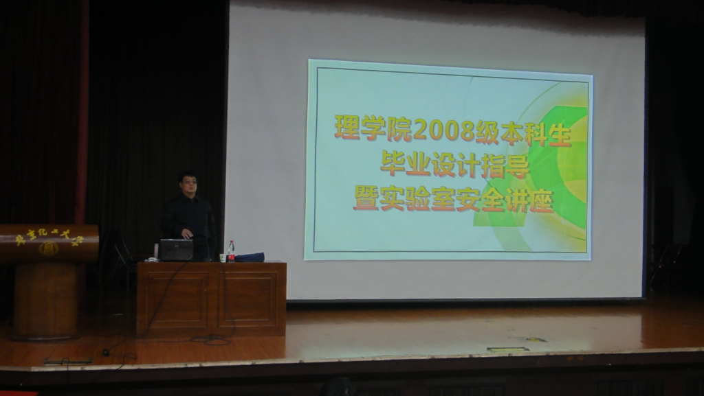 毕业设计是大学本科教育的最后一个教学环节,也是最重要的一个环节,是对学生综合能力和素质的考核。为了规范毕业设计管理,进一步提高毕业设计质量,加强实验室安全教育,2月23日下午,理学院为2008级本科生举行了毕业设计指导暨实验室安全讲座。理学院党委书记白守礼、党委副书记郑秀英,副院长战可涛(挂职)、2008级辅导员及全体同学参加了讲座。讲座由学院白守礼书记主持。