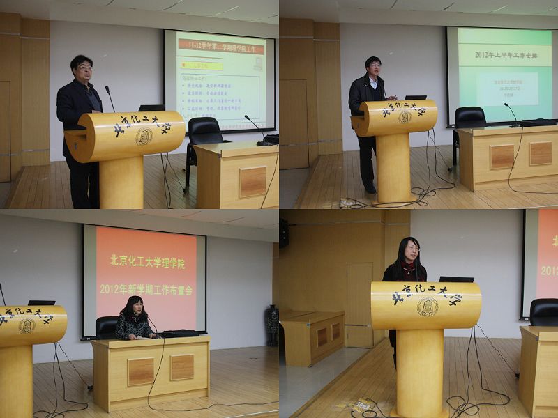 理学院院长李殿卿总结了学院刚结束的新一轮岗位聘任工作,在明确岗位职责和分解工作内容等方面进行了布置,并鼓励教师在新一轮聘期中作出新的成绩。随后,他结合2012年学校工作布置会的会议精神,对2012年学院的重点工作做出了安排。在学科建设方面,积极参加化学、数学和物理三个学科新一轮的评估,在北京市和国家重点学科申报上加大力度。在队伍建设方面,继续开展学院各学科的高层次人才引进及中青年教师的培养工作,促进学院的各项事业的可持续发展。此外,为适应学院各学科发展壮大的需要,学院将在化学、数学和物理三大学部内进行机构改革和人员调整,推动学院更好更快的发展。
