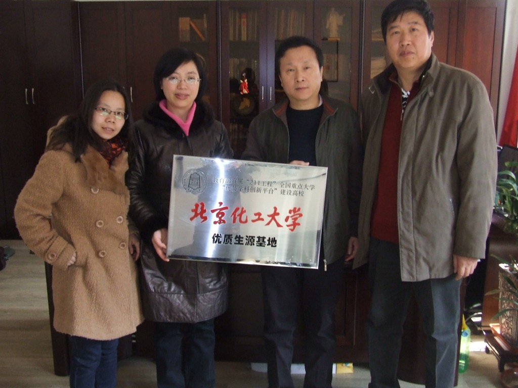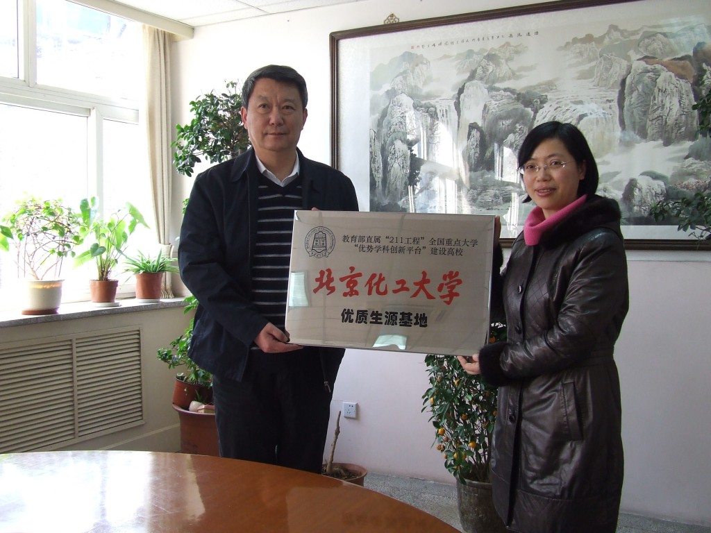 为进一步加强我校招生宣传工作,提高我校知名度,2月28日和3月2日两天,信息科学与技术学院派出由李宏光副院长、汪雪琴副书记带队的四人工作组赶赴天津市第二中学、天津市新华中学和天津市南开中学,签订了“北京化工大学与优质生源基地中学创新人才培养协议”,并举行了“优质生源基地”的挂牌仪式。