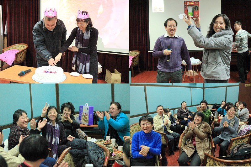 一曲《因为爱情》拉开了联欢会的序幕,引来了全场观众的热烈掌声。接下来到场老师陆续登场,演唱自己的拿手曲目。刘安国老师的意大利歌曲《It's time to say goodbye》更是博得了雷鸣般的掌声,将联欢会带向了高潮。联欢会中,学院工会还特地为已经退休的林莉老师送上了祝福,丁巨元老师代表学院表达了对林莉老师多年来辛勤工作的感谢;李冬冬老师代表学院工会为潘丽京老师和甘宏业老师送上了生日祝福,表达了对两位老师的衷心祝贺。