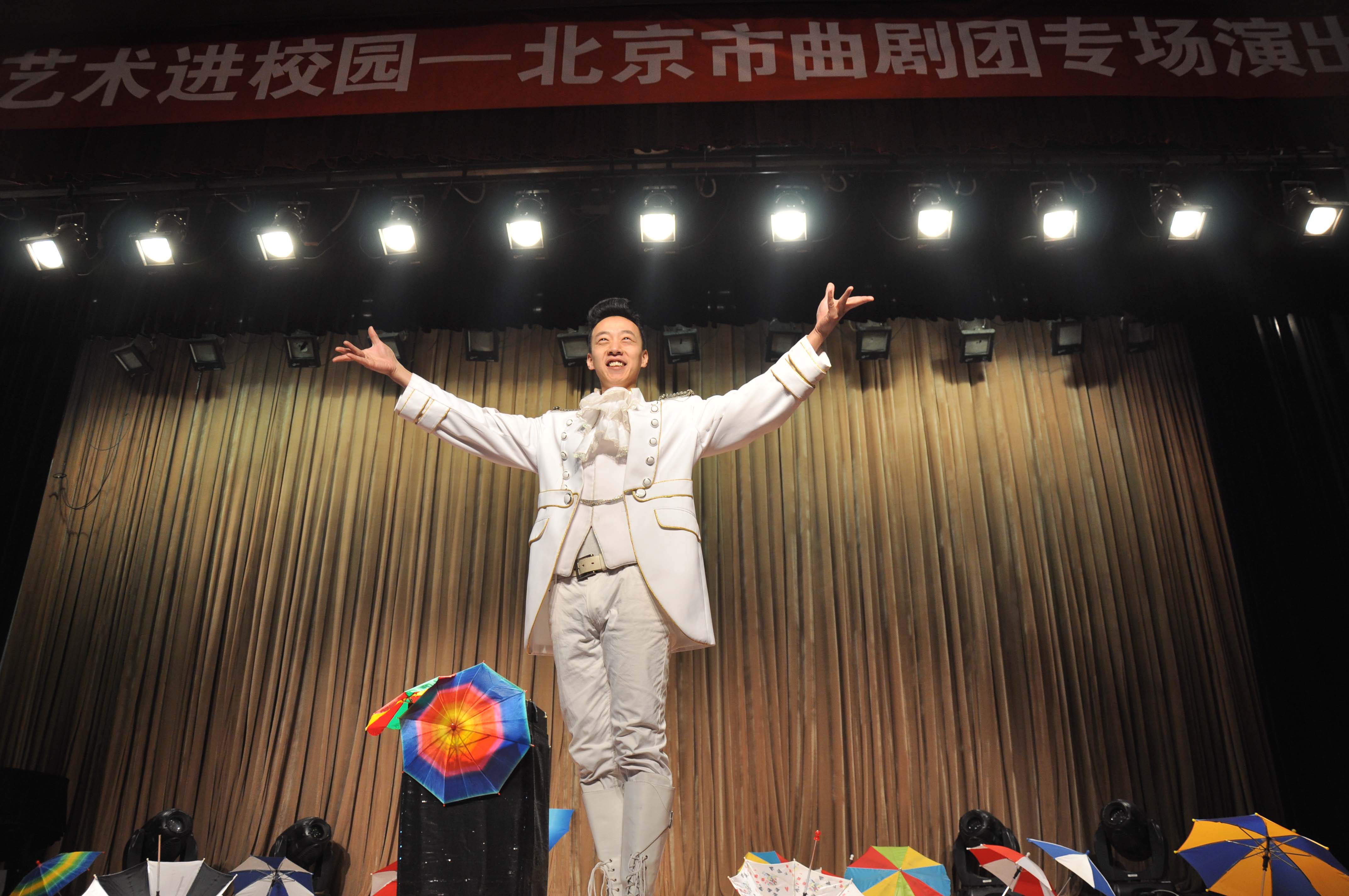 为进一步丰富我校师生的课余文化生活,弘扬民族优秀传统文化, 3月9日晚,由校团委、学生会主办的“高雅艺术进校园”活动之北京曲剧团专场演出在我校科学会堂举行。学校近500名师生前来观看表演。