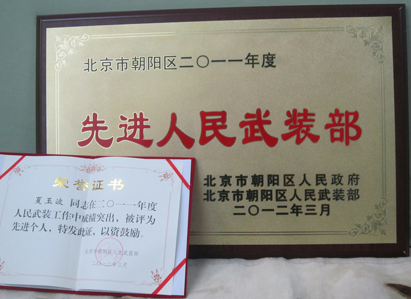 3月9日,北京市朝阳区人武部召开全区国防动员暨民兵预备役工作会。.会上对2011年度武装工作先进单位和个人进行了表彰。我校武装部荣获朝阳区“先进人民武装部”称号,我校武装部夏玉波老师获得先进专武干部称号。