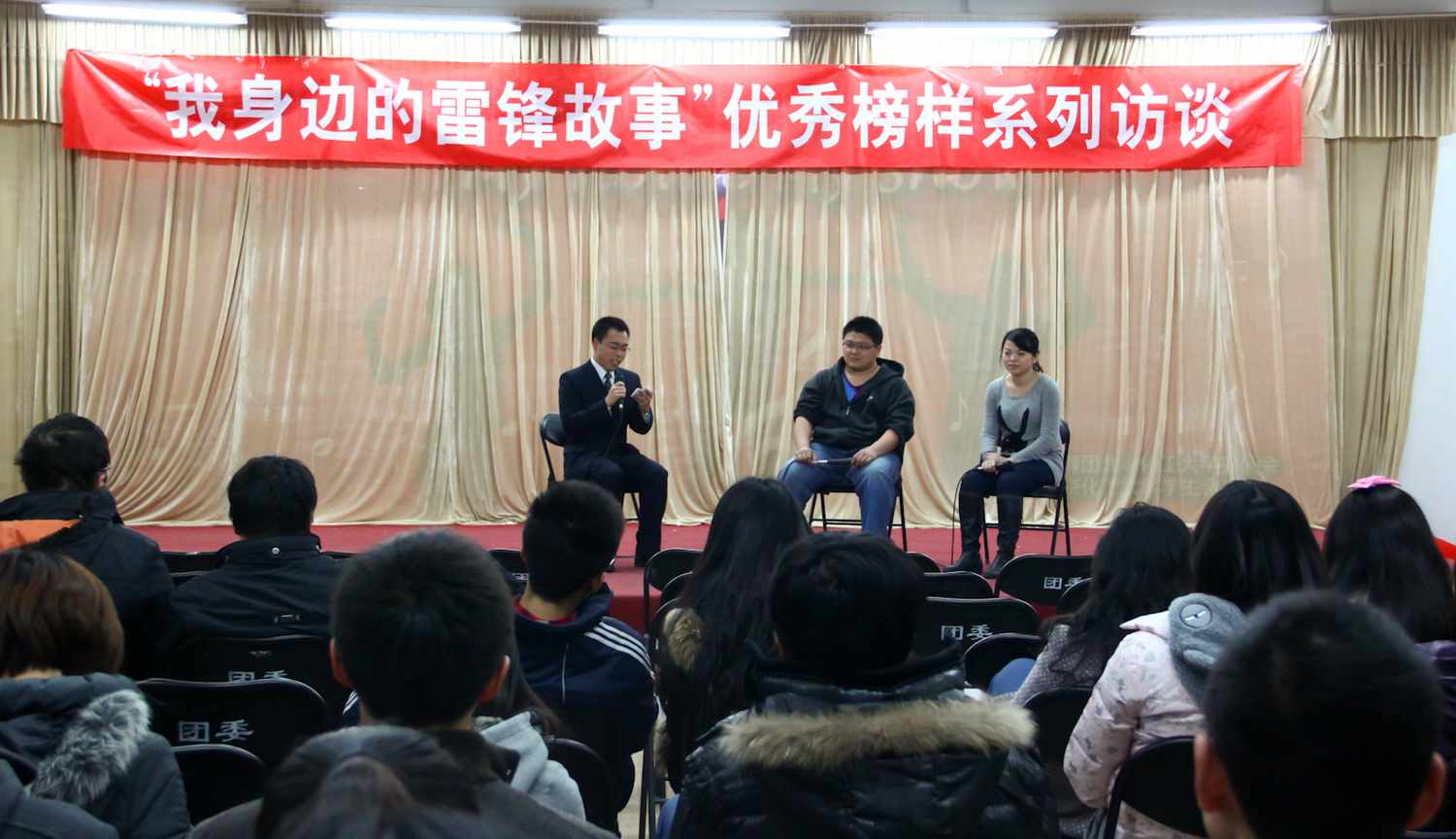 此外,校学生会等各学生组织也在坚持不懈地按步骤推进本年度的“学雷锋”系列专题活动。17日晚,大学生活动中心举行了歌颂雷锋同志伟大事迹的同名电影《雷锋》专场放映,18日晚,“我身边的雷锋故事”优秀榜样系列访谈活动第三场“助人为乐”专场如期举行。参加几场活动的同学们都发出了同样的感慨,纷纷表示一定会在以后的学习生活中以雷锋同志为榜样,勿以善小而不为,尽己所能地帮助需要帮助的人,一点一滴的做好每一件事。