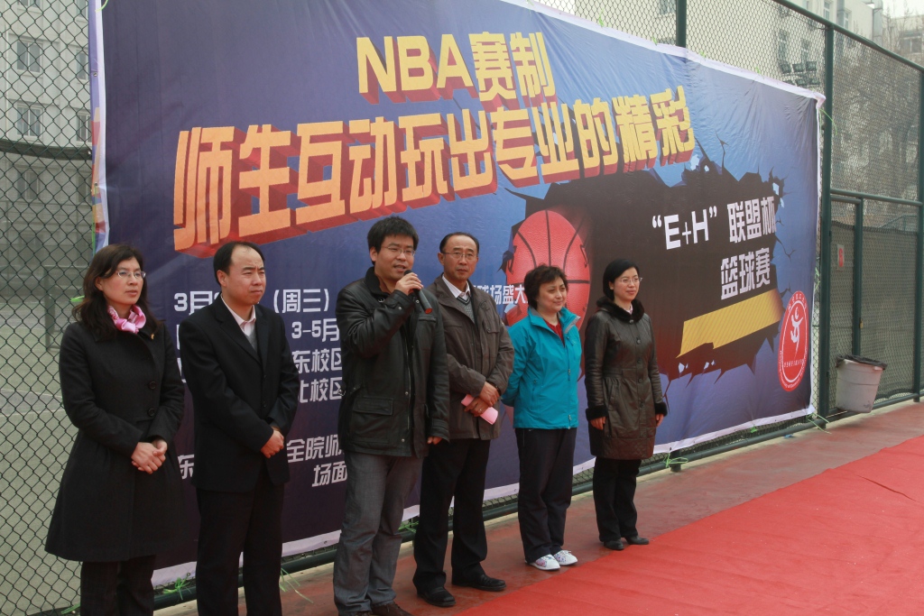 信息学院第三届“E+H”联盟杯篮球联赛开幕仪式于3月21日中午在东校区西篮球场举行。学院党委书记李征,校工会专职副主席靳万民,信息学院党委副书记汪雪琴、副院长兼工会主席杜彬,主赞助商代表“E+H”公司副总经理王卓军先生,“E+H”公司总经理助理黎静女士等出席开幕式。