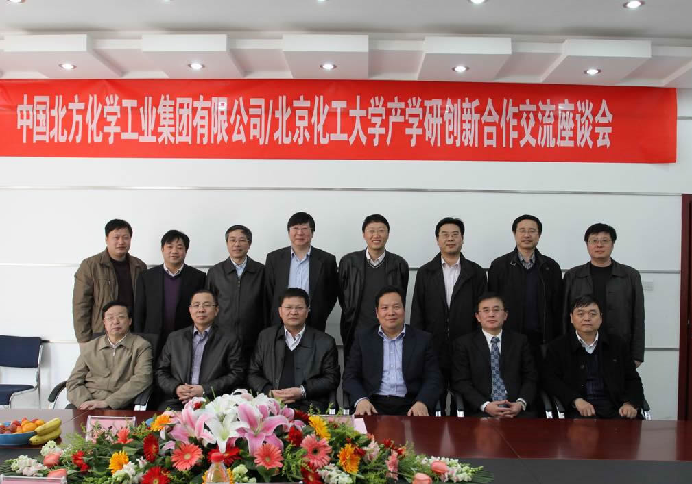 谭天伟副校长介绍了我校发展历史、人才培养、科学研究、基地建设等情况,以及学校“十一五”期间在技术开发、成果转化、校企联合科研机构和学校外设科研机构的建设等方面取得的成就。他指出,“十二五”期间,学校将进一步加强与相关企事业单位合作互动、协同创新,促进科研成果进一步转化,为服务推动经济社会发展做贡献。同时希望两个“北化”通过建立联合实验室、研发中心等形式,完善协同创新工作顶层设计,形成能够发挥实效的产学研用一体的协同创新体系,促进双方共同发展。