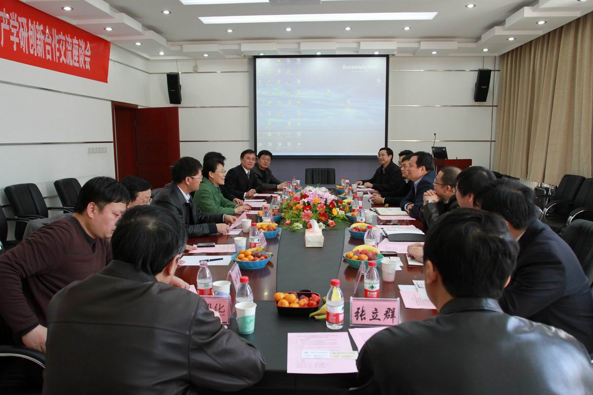 我校党委办公室主任韩克飞,材料学院常务副院长张晓丰、副院长徐樑华及张立群教授,高新技术研究院副院长杜中杰等参加座谈会。