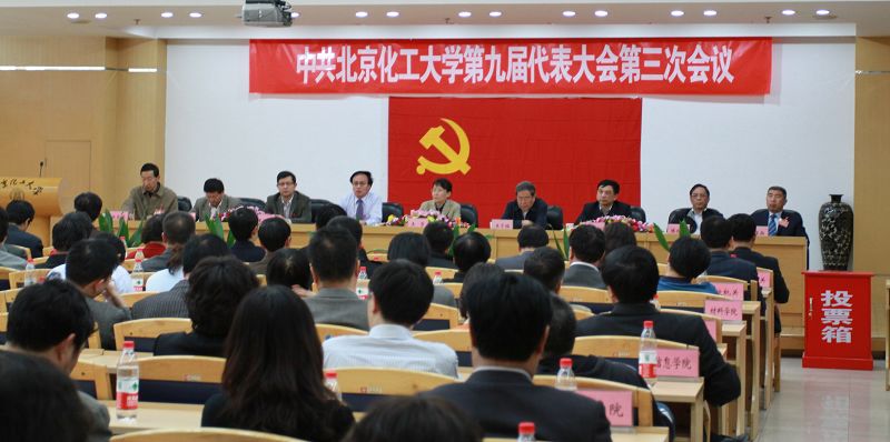 春天的北化校园,一片生机盎然。根据《中国共产党章程》及《中国共产党基层组织选举工作暂行条例》有关规定,4月12日下午,在雄壮的国歌中,中国共产党北京化工大学第九届代表大会第三次会议在会议中心多功能厅胜利召开。本次会议主要任务是选举产生北京化工大学出席北京市第十一次党代会代表。学校党委常委会委员、第九届党代会代表参加会议。会议由校党委副书记兼纪委书记关昌峰主持。