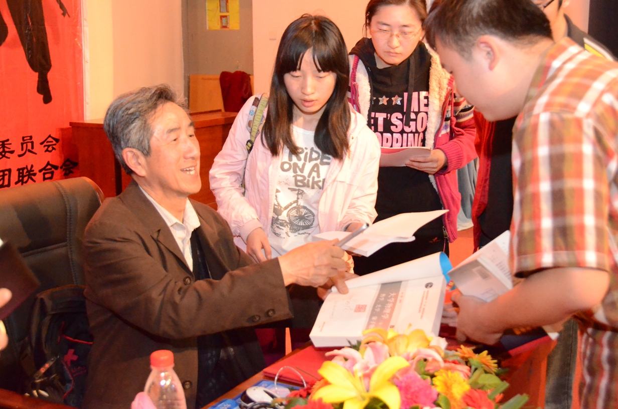 陈冬生副校长为叶如陵教授颁发了校外辅导员聘书,并向叶如陵教授表达了敬意,同时勉励广大同学认真学习叶如陵教授“贵在坚持”的品质。我校志愿服务总队学生为叶如陵教授献上了精心准备的纪念册,全体同学起立向叶如陵教授鼓掌致敬并纷纷上台签名留念。