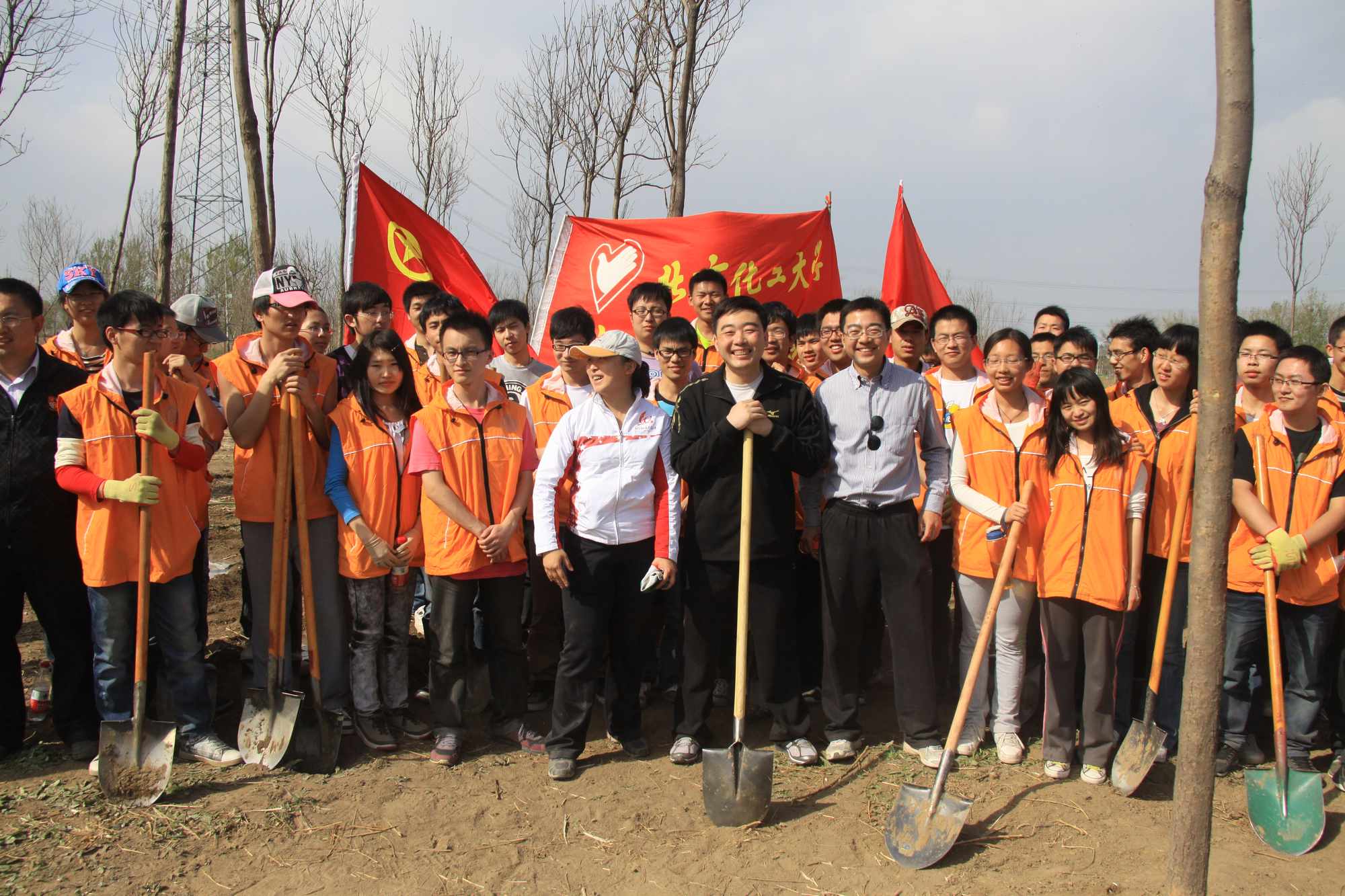 为响应团市委“青春与绿色同行”首都大学生参与全市平原地区造林工程青年先锋造林行动的号召,4月13日,我校团委带领50名学生前往通州区台湖镇青年林地块开展植树造林活动。团市委副书记常宇、黄克瀛及各部处负责人参加了本次活动。
