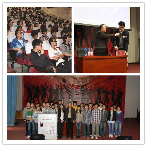 讲座以师生互动的方式开始,马老师通过“考考你的智力”游戏以及 “直觉失败”、“巧妙几何直观”等奇妙的问题激起了现场学生的好奇心和求知欲。他和同学们一起探讨了生活中的数学应用实例,深入浅出,循序渐进,让大家感受到数学的趣味性,感受到数学就在身边,感受到数学与现实生活的密切联系。为了更具说服力地表明他的观点,马国瑜教授通过大家熟知的数学家展示了数学的智慧性和启蒙性,让大家仿佛身临其境般地与名人促膝而谈。从达芬奇到拿破仑,又从欧拉到冯诺依曼,马老师妙语连珠的演讲使人赞叹不绝。在谈到学习数学的目的时,他意味深长地说:“人之所以区别于其他动物,是因为会思考;而人之所以会思考,是因为有数学。”