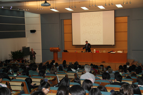 随后Phillips教授在逸夫会议中心学术报告厅为来自京、津五所高中的200多名国际学生做了题为“A little light relief”的科普学术讲座。此次讲座旨在为高中学生进行化学科普教育和兴趣启蒙。讲座由戴伟教授主持。
