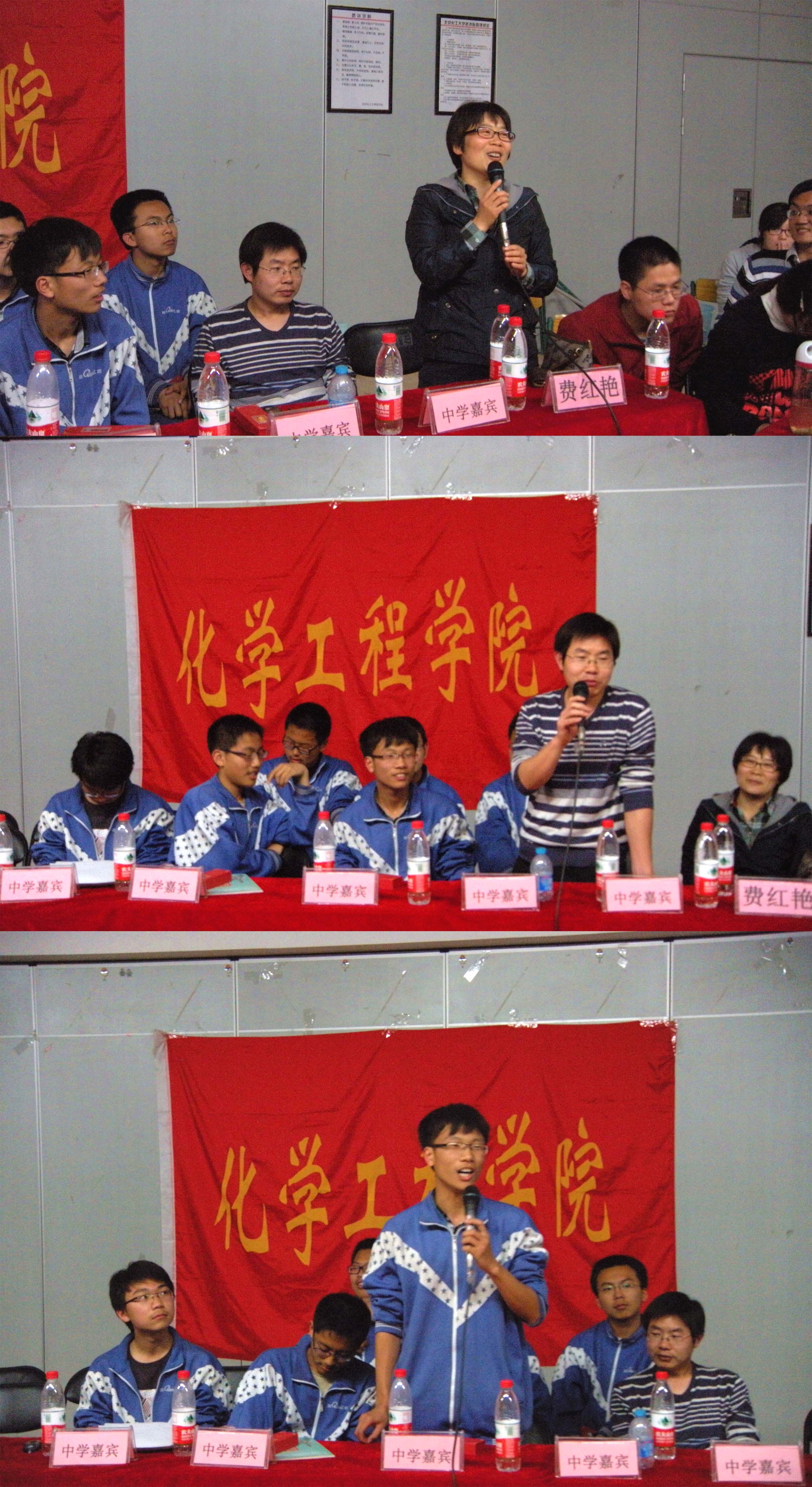比赛间隙,费红艳老师向今晚来观摩比赛的中学生介绍了此次比赛的相关内容及化工学院的专业设置。广渠门中学的李志武老师充分肯定了此次观摩学习对学生开拓视野,树立专业目标的显著作用。到场的中学生代表则表示获益良多,