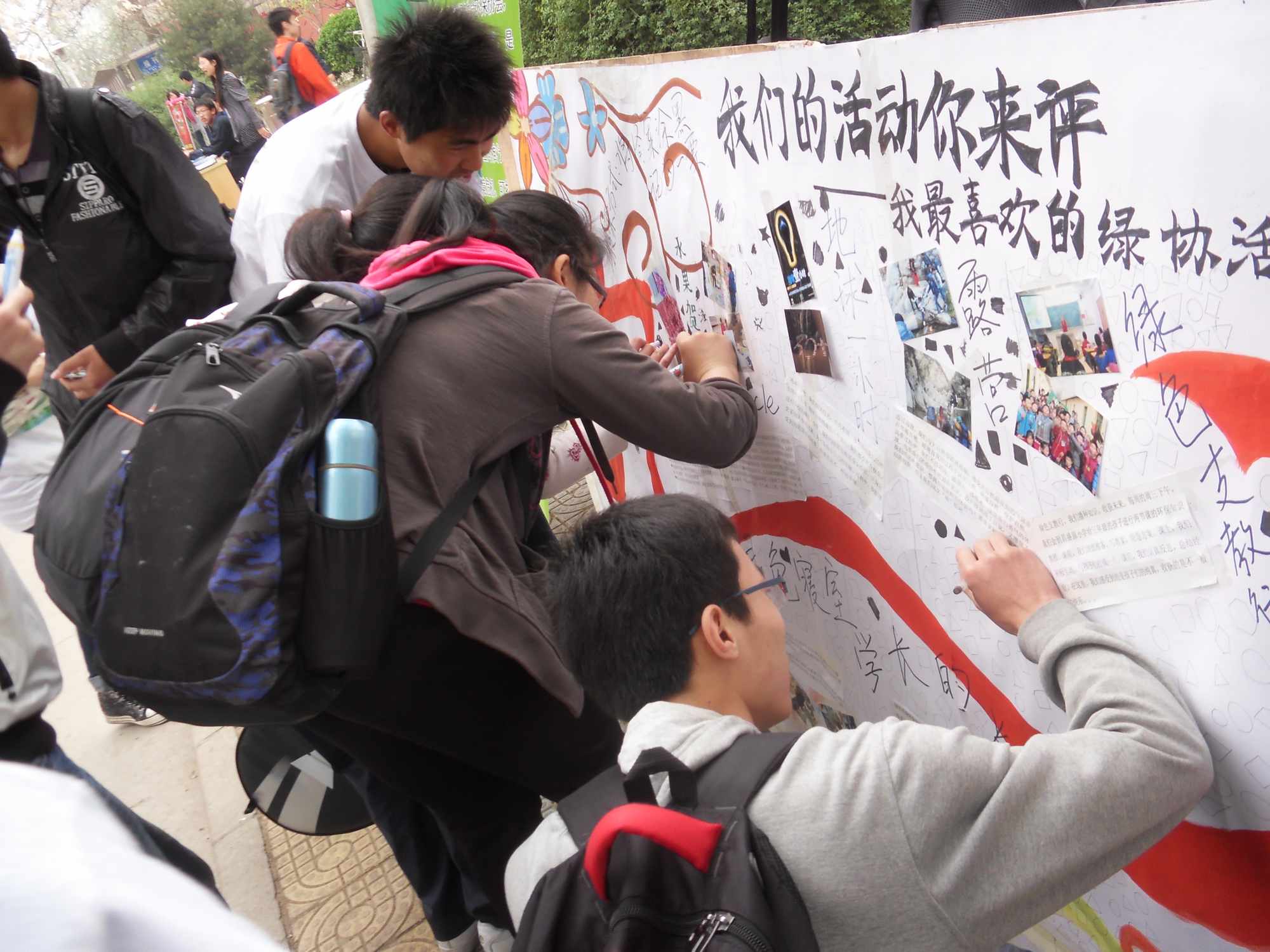 自4月16日开展社庆活动以来,绿协将9年来沉淀形成的品牌活动制作成展板在校园中予以展示。4月19日中午,组织同学们为自己喜欢的绿协品牌活动投票,进一步展现环保社团植根同学、环保事业呼唤同学、投身环保人人有责的理念。以山务部露营活动、圣诞苹果计划、绿色寝室活动、Recycle计划等为代表的一批典型活动在同学们手中的投票中涌现出来,反映出了绿协长期以来形成的精品活动的影响力和号召力,也更加激励环保事业的拥护使者们用更过的奇思妙想号召越来越多的同学参与进来。