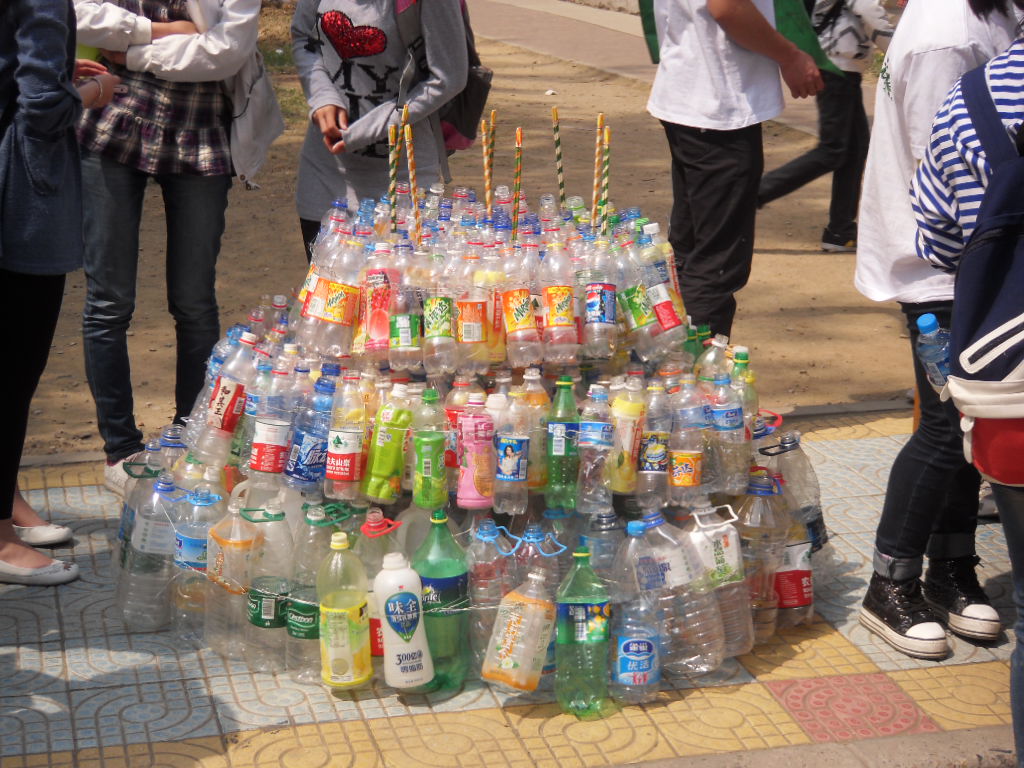 4月17日中午,清露园的东门口赫然摆放着用塑料瓶和筷子做成的一个插有九根蜡烛的大蛋糕,用强烈的视觉冲击力来提醒同学们白色污染的恐怖。大蛋糕配以了文字说明“北化7000人每人一天喝一瓶瓶装水,那么一天将产出此种“蛋糕”25个;每人一天使用一双一次性筷子将要砍伐5棵树木,那么一个月,一年呢……”以此引发同学们的思考,号召同学们减少使用一次性用品。同学们纷纷在展板上签名,承诺成为减少使用一次性用品的“环保使者”。