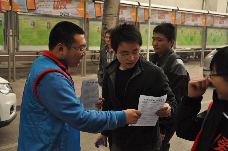 4月23日,我校志愿服务总队在校园内开展了2012年西部计划大学毕业生招募的宣传活动,就2012年西部计划的报名时间、报名方式、志愿服务地和西部地区情况等招募信息以及有关政策文件等向同学们做系统的介绍和宣传。活动吸引了很多同学的驻足观看和咨询,很多同学表达出了强烈的报名意愿,甚至很多非毕业生同学表示等到自己毕业时要参与到西部计划中,为祖国的西部建设奉献青春和力量。