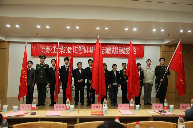 4月26日下午,北京化工大学2012年红色“1+1+N”活动启动仪式暨经验交流会在会议中心举行,校党委副书记兼副校长任新钢出席并讲话,党委组织部部长毛立新、学工办主任罗伟、研工部部长张卫东等相关部门负责人、各学院学生工作负责人以及辅导员、学生党支部书记、学生党员骨干参加会议。会议还邀请昌平区十三陵镇党委书记王建成、副镇长燕明星,建国门街道组织部副部长秦兴秋,北京现代采购本部工会主席陶成,武警某部队班长杨博,我校材料学院先进弹性体材料研究中心党支部代表吴卫东以及北京兄弟院校学生党支部书记代表和我校村官代表。
