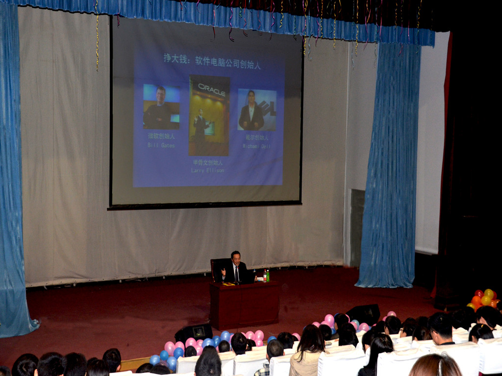 讲座伊始,林教授以“三个母亲的期待”展开自己的讲座,他希望同学们对生育自己的妈妈、教育自己的学校、培育自己的祖国三个“母亲”承担更多的社会责任。随后,林教授用风趣生动且有震撼力的语句指出成功的内涵,真正的成功者能够做到“三立”即立功、立德、立言,并以平常人心态自居。他指出人的能力是多方面的,不同人有不同的特长,而教育的责任在于开发这些能力,并提醒我们要正确理解教育,要时刻关注创新和创业。讲座过程中,林教授积极与师生互动,现场气氛活跃,他诙谐的语言和敏锐的思想博得了阵阵热烈的掌声。在踊跃的提问环节,林教授为同学们解答了当前教育教学改革的热点问题,并将亲笔签名的个人演讲集《三个母亲》赠给了提问的同学。