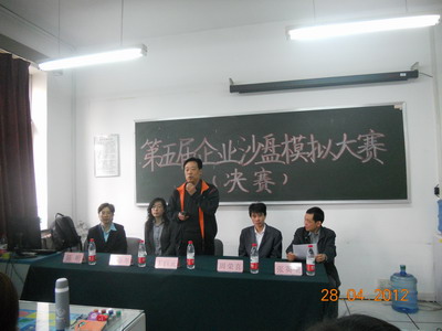 由经济管理学院、教务处、学生工作办公室联合举办的第五届ERP沙盘模拟对抗赛总决赛,在经过近2个月的准备、初赛及半决赛之后,于4月28日在化纤楼5层经管实验中心拉开帷幕。原副校长丁巨元出席开幕式并致辞。经管学院院长余乐安,副院长周荣喜、李冬冬(挂职),经管学院张英奎教授、陈明副教授等参加了开幕式。