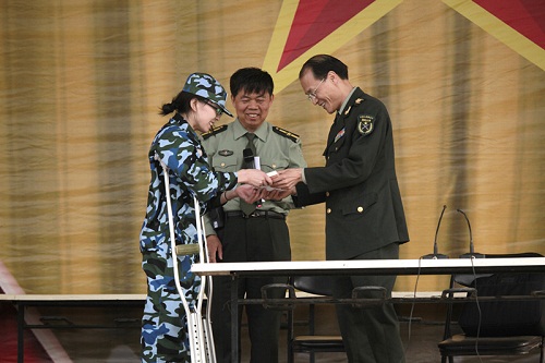 报告会结束后,公教授将自己的著作书籍赠送给我校学生代表,并鼓励他们在军训中磨练坚定意志,努力践行雷锋精神。