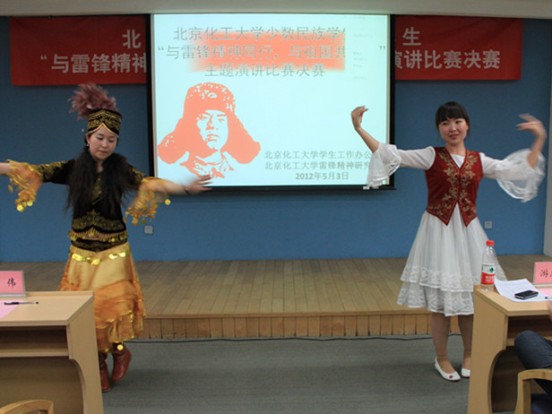 本次演讲比赛分两轮进行,4月12日分别在东校区和北校区举办了初赛,共有61名少数民族同学参加了初赛,其中16名同学入围决赛。5月3日,决赛现场,各位参赛同学身着各民族节日盛装,有备而来。决赛中,16名选手紧扣主题,有的阐述雷锋精神的深刻内涵;有的从平凡的事迹中发掘雷锋精神的时代特征;有的回忆身边发生的学雷锋故事;有的讲述身边的学雷锋典型;有的结合自己来京求学的经历讲解对雷锋精神的体会;有的结合民族地区的发展变化表达对祖国的热爱。精彩的演讲充分展示了我校少数民族学生昂扬向上的精神风貌,真切表达了他们自觉践行雷锋精神的信念和决心。用激昂的文字、饱满的热情、飞扬的神采向我们诠释了什么是雷锋精神、我们怎样向雷锋同志学习、如何做一个文明的大学生。比赛现场我校维吾尔族同学还即兴表演了民族舞蹈。