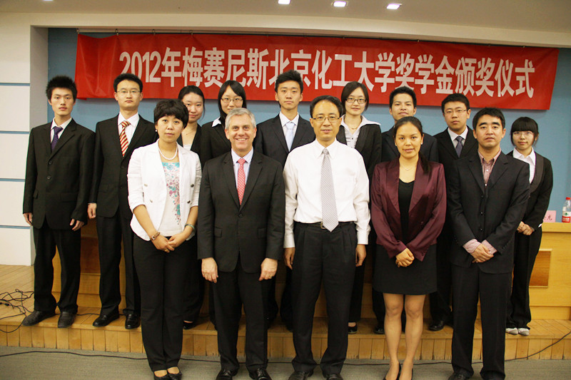5月7日上午,“2012年度梅赛尼斯-北京化工大学奖学金颁奖仪式”在逸夫会议中心举行。梅赛尼斯亚太有限公司董事总经理贺迈、北京代理处首席代表周莉,化学工程学院院长陈建峰、学院党委副书记商云龙出席颁奖仪式。