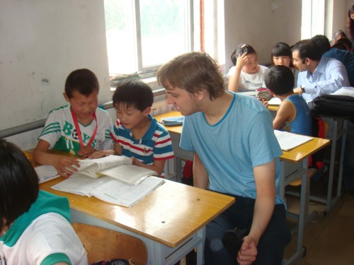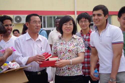 位于昌平区小东流村的振华学校,是一所条件艰苦的民办农民工子弟学校,承载着六百多名学生的梦想。国际处副处长刘振娟代表国际处党支部向振华学校捐赠了多种学习文具和体育用品等,振华学校张天军校长对国际处党支部和留学生们的爱心与支持表示感谢。课间活动中,留学生们和振华学校的孩子们在操场上踢毽子、跳绳等,零距离的接触增进了友谊。随着上课的铃声,留学生们分成了三个组,分别到小学四、五、六年级的三个班级和学生们进行近距离交流。一连串有趣的问答使同学们开阔了视野,增长了见识。孩子们虽然处在艰苦的环境中,却有着强烈的求知欲望,对外面世界充满着好奇和期盼。在自由交流中,有的留学生给孩子们讲述自己留学的经历;有的班级还开展了国外文化有奖竞猜活动,营造了欢乐的学习气氛;另外一个班级里,留学生们经过认真准备给孩子们带来一堂精彩的英语课,教唱英语歌,孩子们纷纷表示感受到了知识的魅力以及学习知识的乐趣!