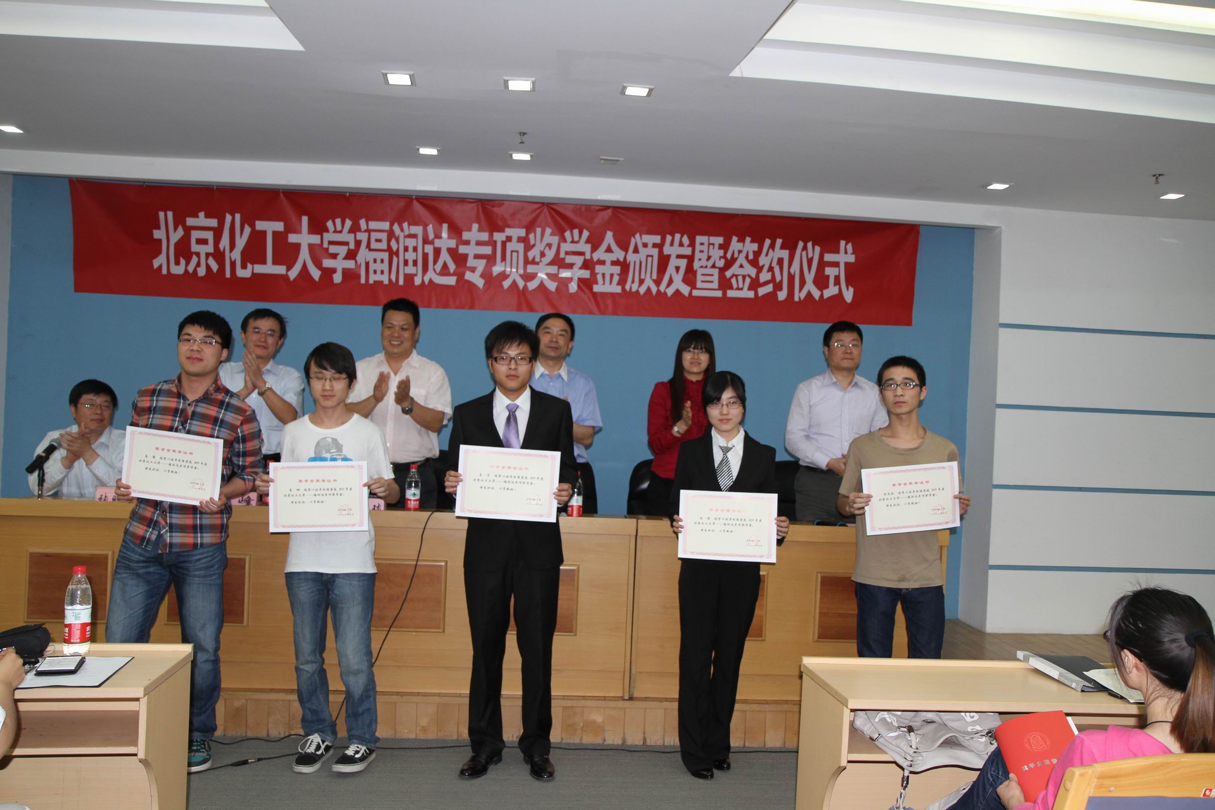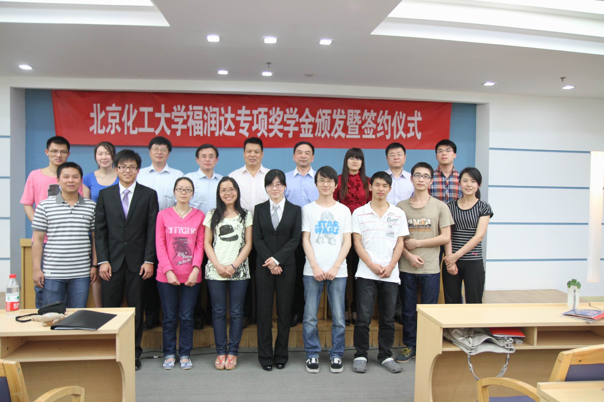5月15日,北京化工大学福润达专项奖学金颁发暨签约仪式在逸夫会议中心中心会议室隆重举行。校党委副书记兼副校长任新钢、北京福润达集团公司董事长兼总裁周长琰出席。材料科学与工程学院党委书记王峰、常务副院长张晓丰、副院长李齐方,北京福润达集团公司总裁助理刘雪莲、研发部副主任李娟等参加了仪式。会议由张晓丰副院长主持。