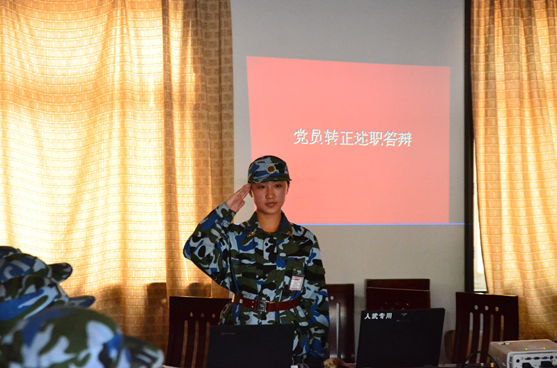 本次军训团新生预备党员转正答辩会,既是一次党员思想信念的实践,又为各连队提供了相互学习的契机,从思想上和组织观念上对党员进行考察,充分展示了新生学生党员的风采。