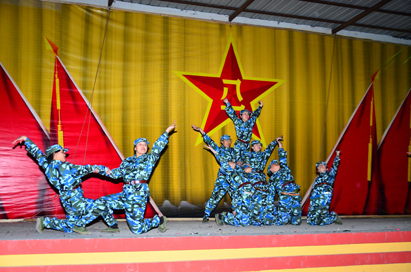 晚会在校民乐团轻松欢快的精彩演奏中拉开序幕。各连献上的表演一次次引爆全场,学员们精心编排的歌曲串烧,以澎湃激昂的歌声唱出了军人雄浑豪迈的气势;豪迈奔放的草原歌曲和民族地域特色鲜明的藏族舞蹈展现出各族学子一家亲的情怀;舞蹈《红旗颂》以优雅的背景音乐、飞扬的舞姿,抒发了对党的崇敬与热爱;轻盈欢快的国标舞和动感精湛的街舞再现了充满活力的军训生活;说唱节目《龙井归》以新颖的形式生动展现了军营中的兄弟情、战友情;学生自主创作相声《学电台》,幽默、诙谐地展现了阳光活泼的军营生活;深情婉转的诗朗诵《感恩教官》抒发了学员对教官深厚的情谊。