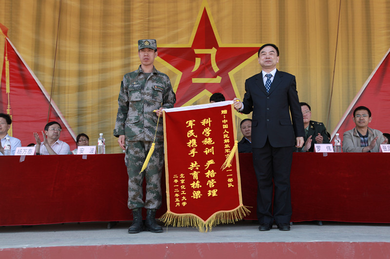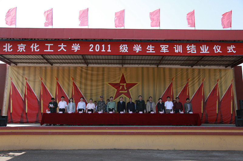 5月17日上午,我校2011级学生军训结业仪式在八达岭军训基地举行。校党委副书记兼副校长任新钢出席仪式。学工办主任罗伟、北区办主任郭奋、教务处副处长张凤元、化工学院党委书记山岚、材料学院院长杨万泰、信息学院党委书记李征、经管学院党委书记冯婕、理学院党委书记白守礼、文法学院党委书记张亮、生命学院院长袁其朋及各学院学生工作负责人参加了结业仪式。延庆县武装部政委王立明应邀莅临观摩指导我校学生汇报表演。2011级军训团领导、教官、指导员以及全体学生参加了结业仪式。