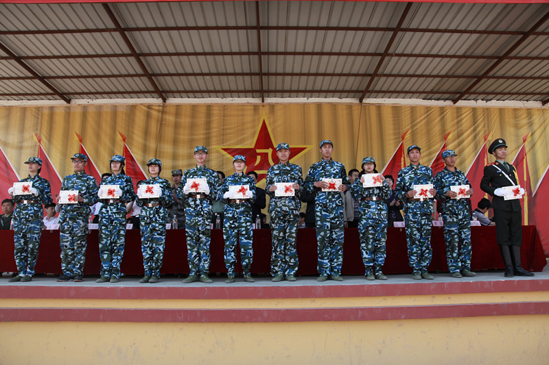 军训团团长安波宣读嘉奖令,表彰军训中的先进集体和优秀标兵。其中,一连被评为标兵连,二连、九连、十连被评为先锋红旗连。与会领导为先进集体和优秀标兵代表颁奖。随后,校党委副书记兼副校长任新钢分别向承训部队和军训基地赠送锦旗,以示感谢。八达岭军训基地向军训标兵关晓妮颁发助学金,鼓励她克服困难、奋发学习。延庆县武装部政委王立明讲话,他希望同学们继续发扬不怕苦、不怕累的优良作风,努力学习科学知识;弘扬传统文化,实现自身价值;培养爱国、爱军队的意识,力争成为栋梁之才。
