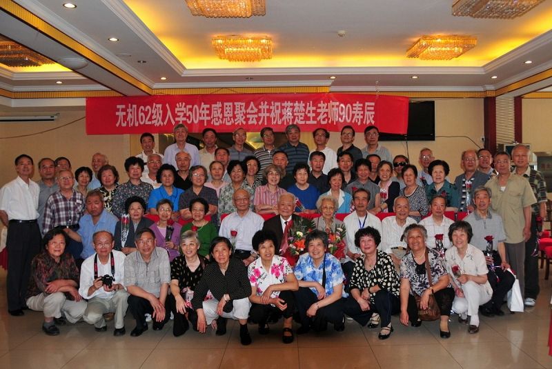 白驹过隙,日月如梭。 5月20日 ,我校无机系62级50余名同学从全国各地回到母校,和30多位老师欢聚一堂,举行入学 50 周年感恩聚会,并为蒋楚生老师庆祝 90 寿辰。校党委副书记、校友总会常务副会长王同奇出席聚会并做了热情洋溢的讲话。