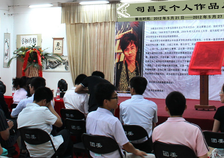 5月21日,“北京化工大学学生司昌天五四书画个人书画作品展”在北京化工大学大学生活动中心举行,此次展览共展出作品共80余幅,其中包括中国画、书法、油画、素描速写等,全面的展示了司昌天同学的创作才华,吸引众多师生和艺术爱好者前来观看。
