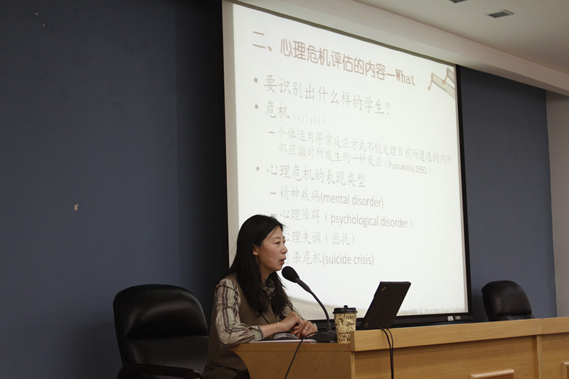 张宏宇副教授从大学生心理危机的真实个案为例,论述大学生心理危机识别和干预的必要性。她从心理诊断和评估的含义、不同情境下的评估和诊断、高校评估和诊断目标三方面阐释心理评估的基本内涵;通过心理健康人的系统范式与严重心理障碍的典型特征对比,阐述心理危机评估的内容及表现类型。以生动的事例,详细介绍了心理测验、心理健康普查、生态化评估、深度谈话等心理评估方法。她认为,大学生的心理危机评估要借鉴精神科、心理学等学科的评估理念、方法和手段,正确把握判断异常状况的尺度,应该遵循小心求证、谨慎用词、严格保密、动态评估原则。她衷心希望辅导员在平时生活中注意用眼睛、头脑识别危机,用人文关怀化解危机,促进每一位学生的健康成长。文法学院2011级辅导员邓磊对讲座内容深有感触,他说,辅导员学习和了解心理评估,提升自身判断分析能力,能让辅导员深入了解学生的内心,促进与学生的有效沟通,有利于学生健康全面发展。