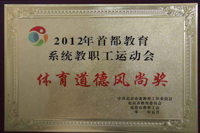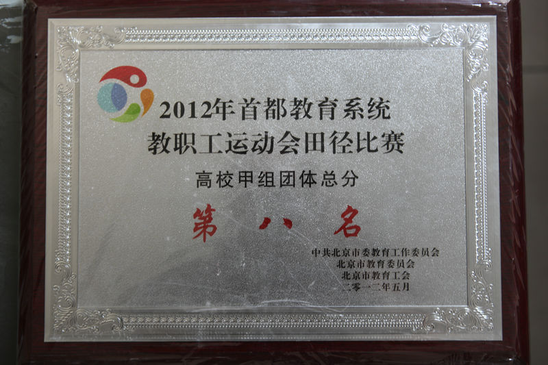 根据北京市教育工会刚刚公布的比赛成绩,在5月26日结束的首都教育系统教职工运动会田径比赛中,我校教职工代表队奋勇拼搏,荣获高校甲组田径团体总成绩第八名(高校甲组共30余个高校)。我校同时获得体育道德风尚奖、优秀组织奖荣誉称号。