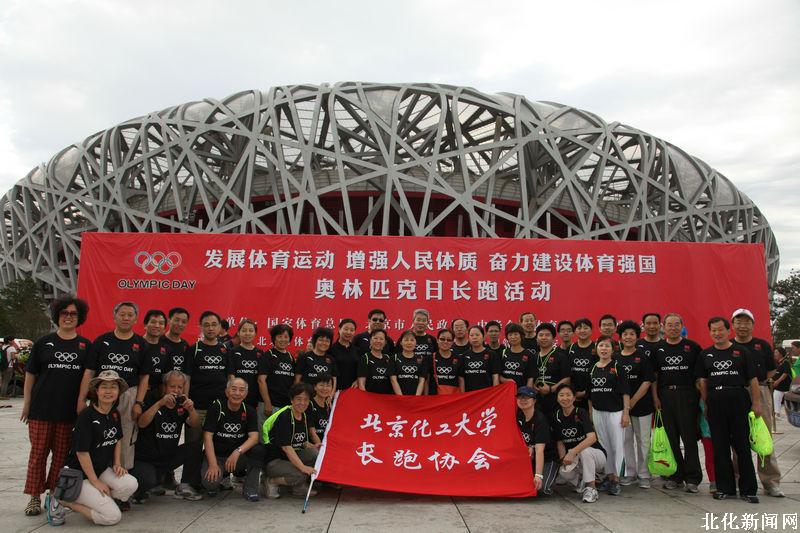 名会员身着奥运五环五色运动服,与万余名首都长跑爱好者一起参与此活动。