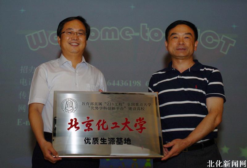 在辽宁省实验中学挂牌仪式上,任新钢副校长对该学校的办学特色和综合实力予以高度评价,并对近年来向北京化工大学输送优秀新生表示感谢,随后重点介绍了我校学科特色和发展情况,就人才培养,师资力量,学术研究,学生就业等方面作了介绍。赵静主任着重介绍了我校今年在辽宁省的招生计划和“优质生源基地”的优惠政策及实验班、国际班等针对优秀新生特色办学的相关政策。