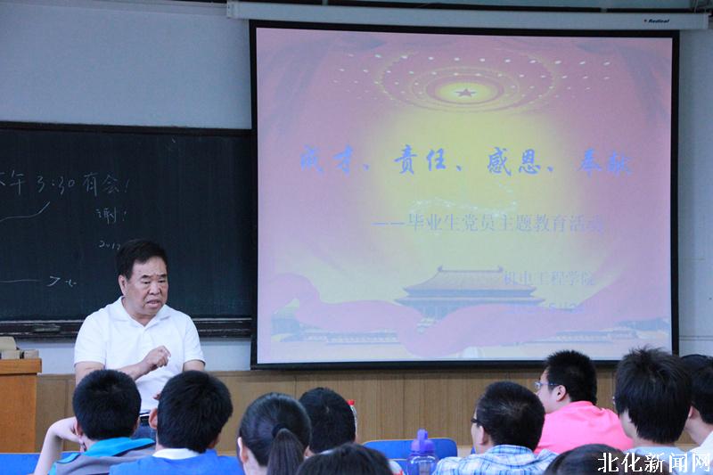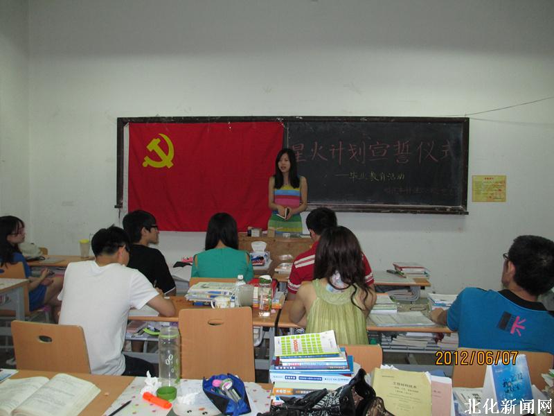 化工学院开展“走出大学的最后一堂党课”活动,号召毕业生党员重温入党誓词,接受党性教育。材料学院毕业生党支部举行“星火计划”宣誓仪式,号召学院全体毕业生党员毕业前为母校做一件好事。机电学院本科生毕业班党支部联合开展了“学生党员将入社会,职业生涯拷问党性”主题交流会,以及 “就业之路,与你同行”等为主题的“学生就业党员一帮一”实践活动,同时还邀请我校71级校友刘景海为毕业生党员上了一堂“成才、责任、感恩、奉献”为主题的党课。信息学院毕业班党支部举办了“与梦想对话考研就业交流会”活动进一步增强毕业生就业信心,同时还组织毕业班优秀党员回到北区与低年级同学分享心得。经管学院08级工商大类党支部召开毕业生党员交流会,探讨在今后的工作岗位上如何发挥党员的模范作用。理学院充分挖掘在考研、就业和出国留学等方面取得成绩的毕业生党员的成长历程和宝贵经验,通过组织交流会和制作手册等形式传承榜样精神。文法学院召开毕业生党员考研就业经验分享会,启动“党员旗帜在基层”系列活动,作为长期项目对大学生村官、社区工作者进行职业跟踪记录。生命学院组织毕业生党员重温入党誓词、观看《复兴之路》、为学校建言的“三个一”活动。